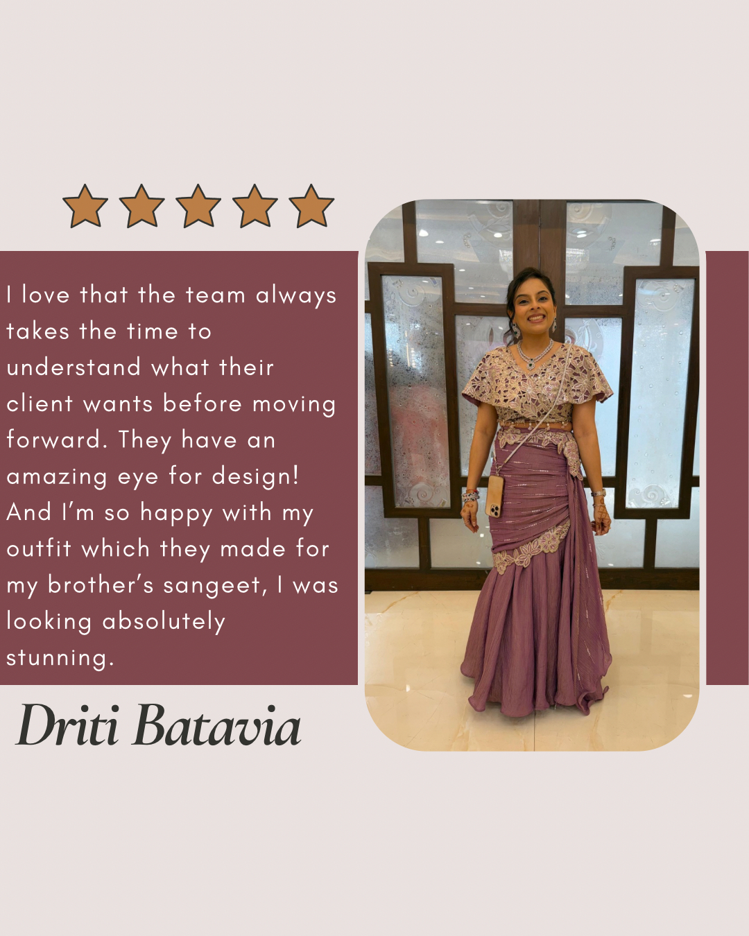 “The detailing and elegance are unmatched. I love how unique each outfit feels.”